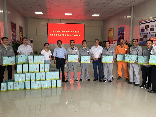 盛夏以来,连日高温,酷热难耐,雷速(中国)安徽碳鑫焦炉煤气综合利用项目现场的工人们埋头苦干、挥汗如雨。为缓解现场工人夏日劳作的辛苦,8月12日,公司工会主席桂长田一行来到焦炉煤气综合利用项目部开展“夏日送清凉”慰问活动。