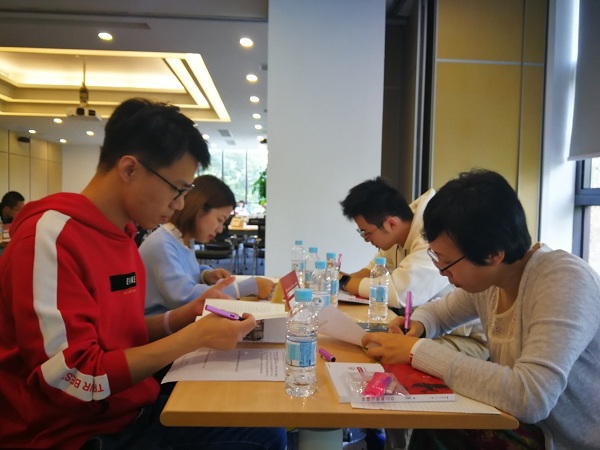 比赛一开始,参赛的小伙伴们就开始紧张地阅读。拿到书本看到目录之后,大家松了一口气,这本比赛用书是一本人物传记,相比前几届哲学类、科普类书籍更加通俗易懂。有经验的队员按照主办方宣传推荐的读书方法首先对全书通读一遍,比赛过程比想象的要更加顺利,大家很快完成了阅读,开始撰写自己的读后感。